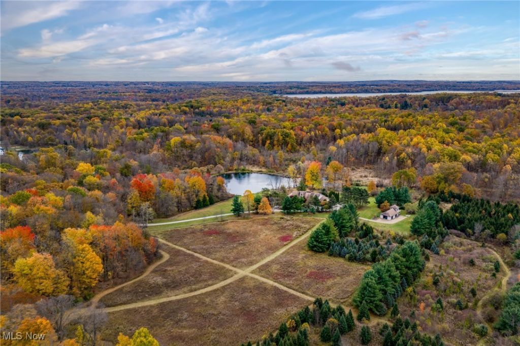Here is your opportunity to own one of the last large parcels of land in Geauga County. This stunning 60+ acre property is truly breathtaking with the main house overlooking a picturesque pond and stunning meadow. A long private driveway through the woods opens onto a circular motor court and the custom designed home with a unique rustic/modern flair! This one of a kind home has an effortless indoor/outdoor flow with walls of windows overlooking the gorgeous grounds. A two story vaulted great room, chef's kitchen, and a generous dining room, flow seamlessly together and make entertaining effortless. The first floor owner's wing is its own retreat with a private sitting room, intimate bedroom area, expansive bathroom, and walk-in dressing room. For your guests or family, there are two second floor bedrooms in a private wing offering total and complete privacy. You will love admiring the wildlife and breathtaking views from the expansive deck which provides amazing outdoor entertaining space. There is an additional outbuilding on the property which is an amazing space with a second story artist studio. This can also be a fantastic private office or exercise studio. If you're a dog lover, there are three air-conditioned kennels with indoor/outdoor access. This incredible property is perfect for an equestrian or someone who seeks total privacy in one of the most breathtaking settings imaginable.